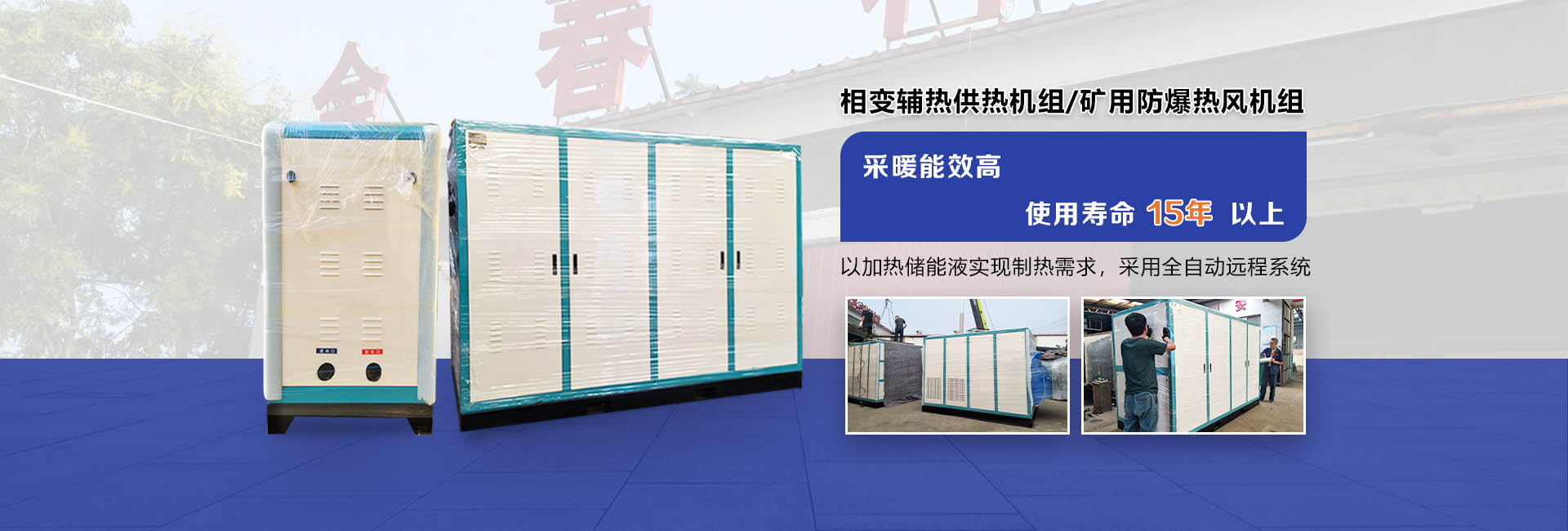 本公司專業(yè)生產(chǎn)相變輔熱供熱機組、礦用防爆熱風機組,可代替燃煤、燃油、燃氣鍋爐,運行成本低,具有加熱快、熱效率高、便于操作,節(jié)能環(huán)保等特點,是新一代理想的環(huán)保節(jié)能產(chǎn)品。